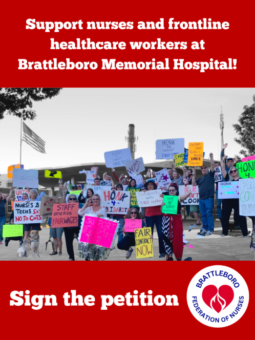 Through mismanagement, the Brattleboro Memorial Hospital (BMH) administration has dug a $14 million hole and is now asking nurses, frontline healthcare workers, and low paid workers to bear the brunt of the economic pain.
